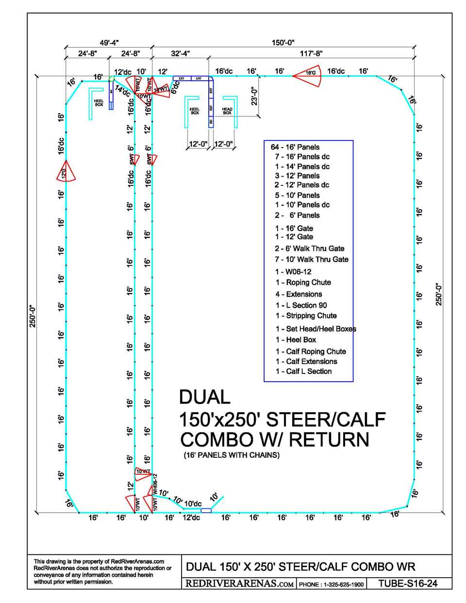 150X250 Dual Steer/Calf Combo w/ Return (PL16 Series Panel)